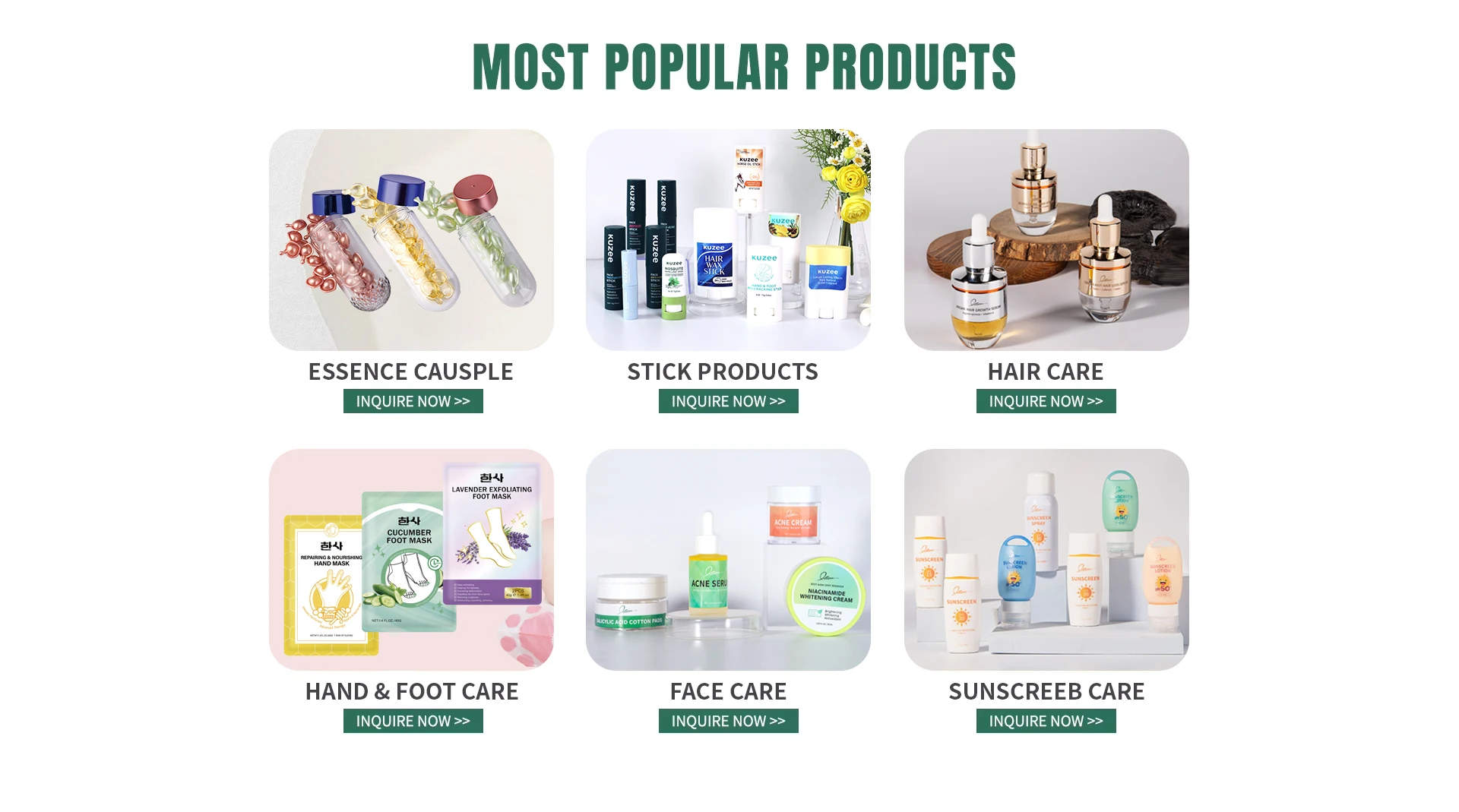Productos principales:Productos detergentes, Productos para el cuidado de la piel, Productos para el cuidado corporal, Suero en cápsulas, Mascarilla para manos y pies